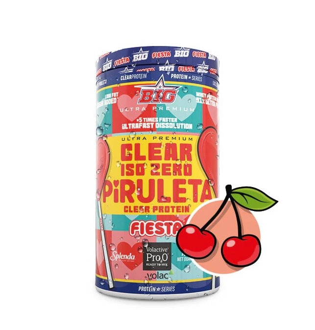 A mediados de 2023 empezaban a comercializarse las primeras proteínas claras, siendo hoy en día un producto totalmente asentado y una opción mas para el consumidor de suplementación profesional. BIG® ha logrado avanzar notablemente en términos de calidad e innovación respecto a sus competidores, presentando su gama de proteínas CLEAR ISO ZERO con la patente exclusiva Volactive® Pro2O® Ready to Mix de Volac® y en una gama de sabores irrepetibles desarollados junto a la prestigiosa marca Fiesta® y su colección de piruletas originales y caramelos Kojak®.