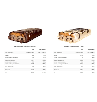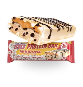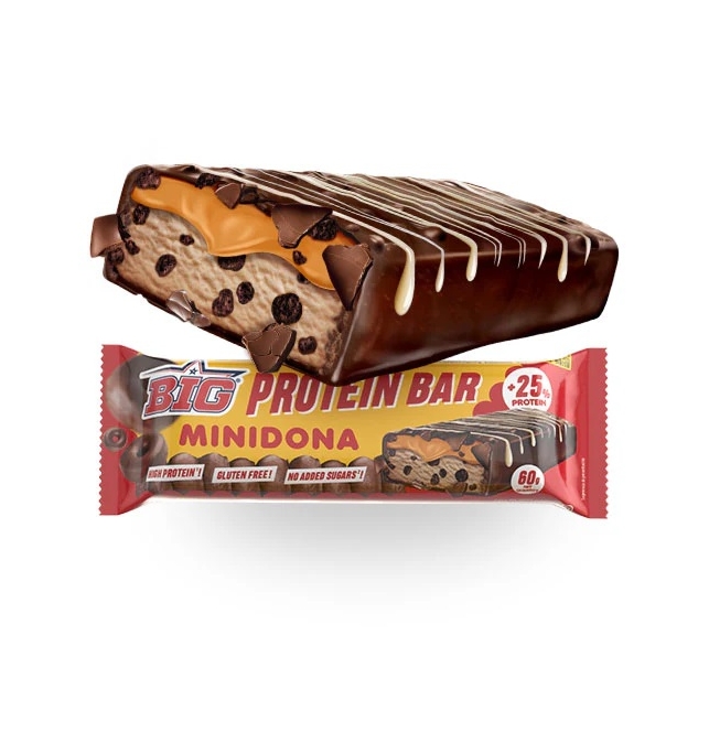 PROTEIN BAR MINIDONA® es una deliciosa barrita proteina multi-layer con 4 deliciosas capas disponible en 2 sabores. Alrededor de un núcleo de proteína Lacprodan® by Arla® Foods Ingredients, una capa con crujiente topping proteico de chocolate negro coronada por una deliciosa lengua sabor a crema Minidona y recubierta por un generoso baño del mejor chocolate Big® original o blanco sin azúcares añadidos.
