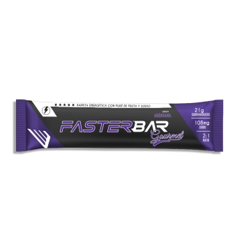 FASTER BAR Gourmet es una barrita energética formulada específicamente para optimizar el aporte de carbohidratos durante la práctica deportiva. Su base de puré de fruta natural proporciona un sabor suave y agradable de fácil digestión y contiene sodio para favorecer la reposición de este electrolito en condiciones de sudoración elevada.