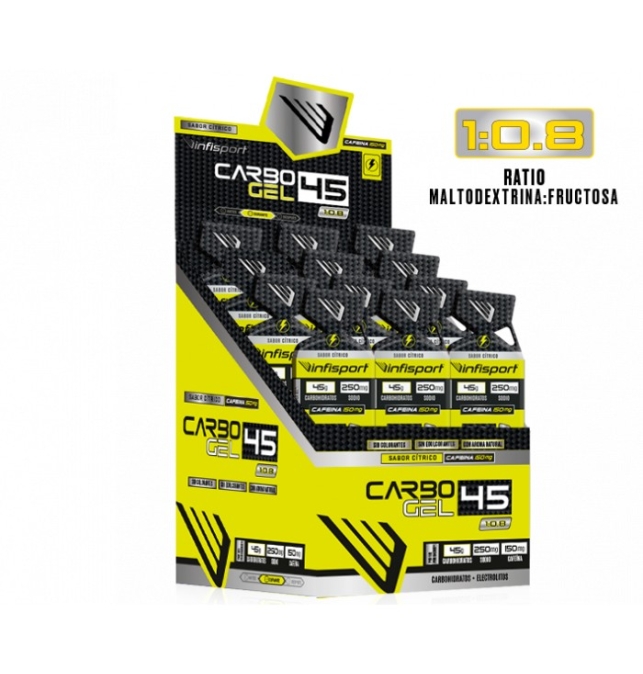 CARBO GEL 45 1:0,8 se presenta en un display de 18 sobres.