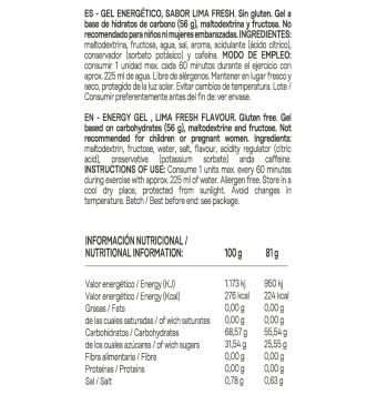 101 Fructose Gel Level 81 Gramos - 56 Gramos CHO + 251mg Sodio