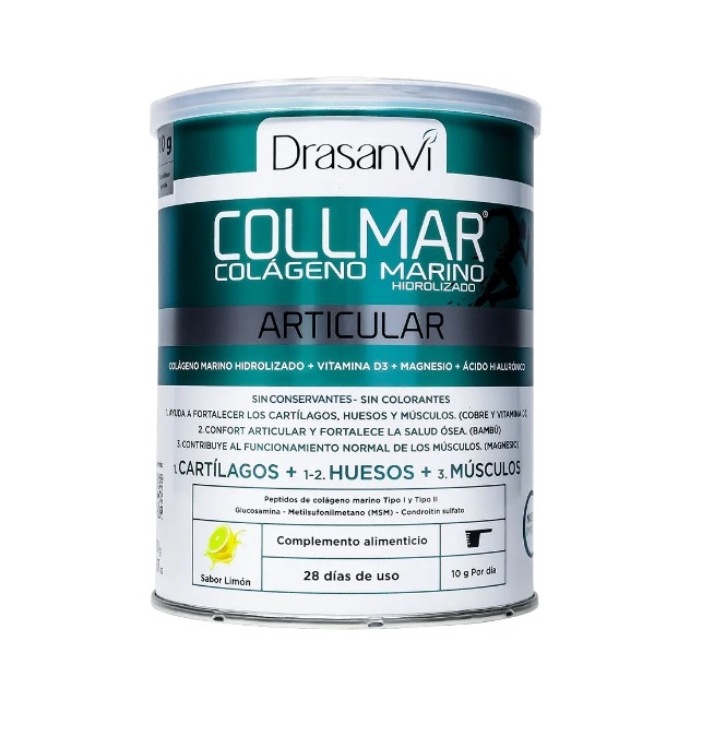 Collmar articular, nuestro nuevo producto es un complemento alimenticio de la gama Collmar. Está formulado a base de Colágeno Marino, condroitina, glucosamina, MSM y silicio que ayuda al confort articular