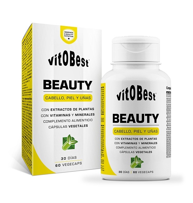 Beauty, de Vitobest®, es la novedosa fórmula elaborada a partir de extractos vegetales, vitaminas, minerales y aminoácidos con propiedades nutritivas ideales para ayudarte a mantener la piel, las uñas y el cabello en condiciones normales.