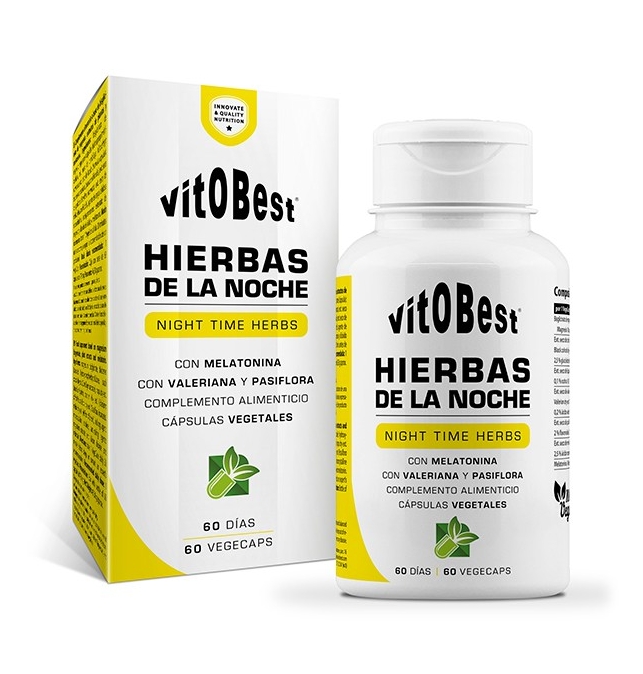 Hierbas de la noche, de Vitobest®, nos ofrece un remedio natural para combatir el insomnio basado en las propiedades relajantes de la valeriana, el lúpulo, la pasiflora y la cimicífuga, plantas tradicionalmente utilizadas con este fin; en unión con la melatonina (hormona natural que produce nuestro organismo en condiciones normales y que disminuye el tiempo necesario para conciliar el sueño) y el magnesio (mineral que reduce el cansancio y la fatiga).