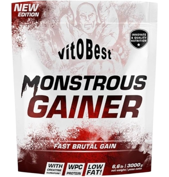 Monster Gainer 2200 de VitOBest es un alimento completo especialmente diseñado para personas que necesitan un aumento de volúmen muscular rápido. Contiene un 5% de monohidrato de creatina para un aumento de fuerza y resistencia. Es extremadamente bajo en grasa, sólo un 7% en el sabor chocolate. Aporta 2200 calorías extras a tu dieta diaria. Tiene un 22% de proteína WPC (ultrafiltrado de suero) rica en BCAAs y L-Glutamina.
