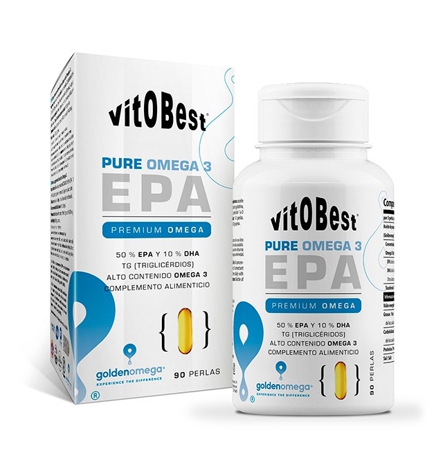 Pure Omega 3 EPA, de Vitobest®, es un suplemento de ácidos grasos Omega 3 concentrado, de la más alta calidad y pureza obtenido por doble destilación molecular, que garantiza un producto prácticamente libre de impurezas, metales pesados y con un perfil sensorial sobresaliente. Además, cuenta con la garantía y calidad de Goldenomega®.