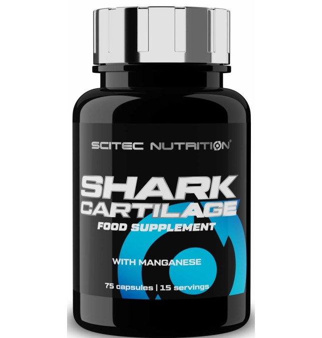 Cartílago de tiburón en polvo (pescado), gelatina bovina, dióxido de titanio, sulfato de manganeso monohidrato.