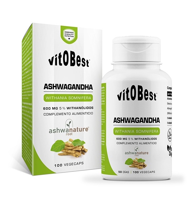 La literatura científica también destaca el contenido en withanólidos de las hojas de la Withania somnífera clasificándolos como reguladores por excelencia. Por eso en la fabricación de Ashwagandha, Vitobest®, utiliza un extracto elaborado a partir de su raíz (extraído directamente en su lugar de procedencia) y de sus hojas (estandarizado a un 5 % en whitanólidos), dando como resultado uno de los productos más completos y de mayor calidad del mercado.