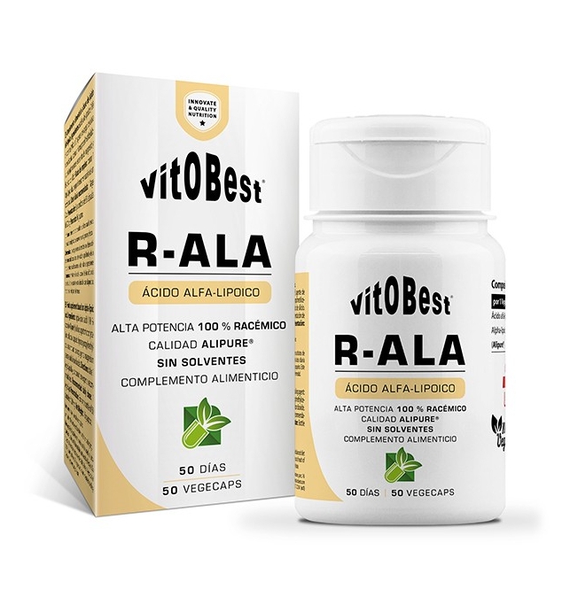 VitOBest R-ALA 50 Cápsulas / Ácido Alfa-Lipoico 100% Racémico de Alta Pureza, con Tecnología Alipure® - CADUCIDAD 11/2025