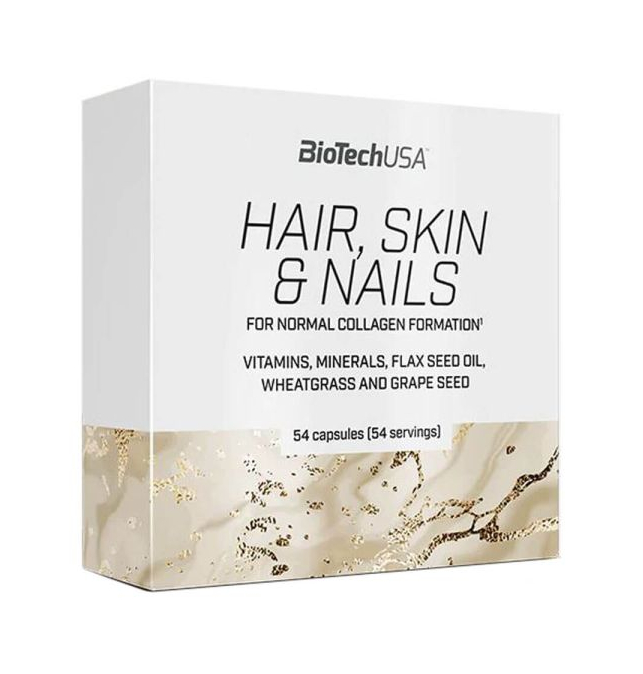 El suplemento Hair, Skin & Nails de 54 cápsulas de BioTechUSA está formulado específicamente para apoyar el cuidado integral de la belleza desde el interior, contribuyendo al mantenimiento de un cabello fuerte, una piel saludable y unas uñas resistentes.